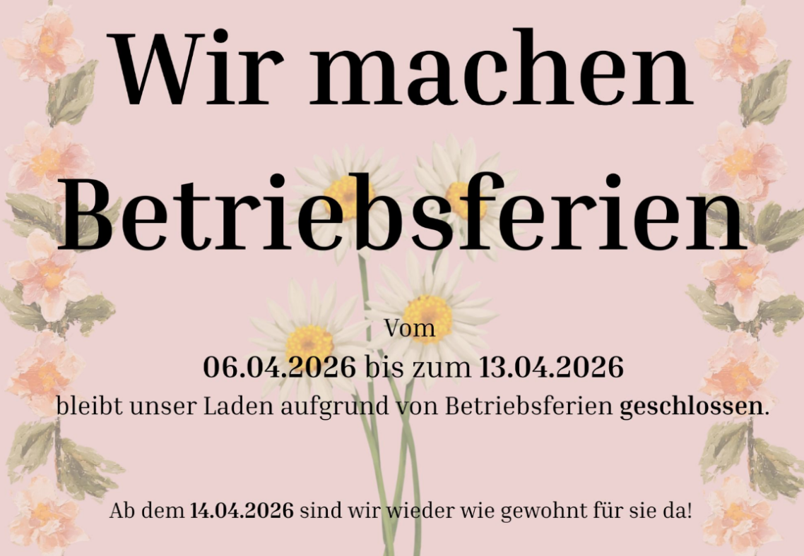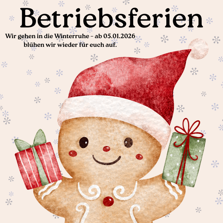 Ab dem 5. Januar 2026 sind wir wieder wie gewohnt mit frischen Blumen, neuen Ideen und unserem kompletten Service für Sie da.